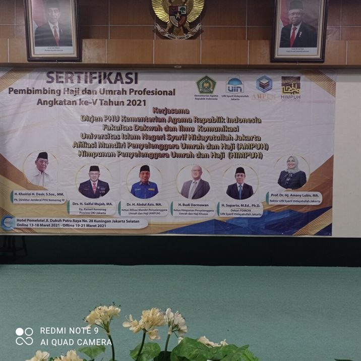 Gedung Pusdiklat Kemenag RI, BERITA FDIK Online – Fakultas Ilmu Dakwah dan Ilmu Komunikasi (Fidikom) UIN Jakarta bekerja sama dengan Direktorat Jenderal Penyelenggaraan Haji dan Umrah (PHU) Kementerian Agama dan Afiliasi Mandiri Penyelenggara Umrah dan Haji (AMPUH) dan Himpunan Penyelenggara Umrah dan Haji (HIMPUH) DKI Jakarta menggelar Sertifikasi Pembimbing Haji dan Umrah Profesional Angkatan ke-5 pada 13-21 Maret 2021. Acara dilakukan secara daring dan luring serta diikuti oleh 91 peserta dari berbagai kelompok bimbingan haji dan umrah, termasuk agen travel penyelenggara haji dan umrah.